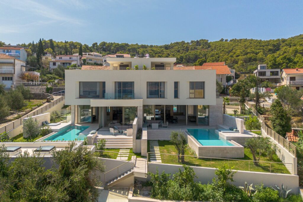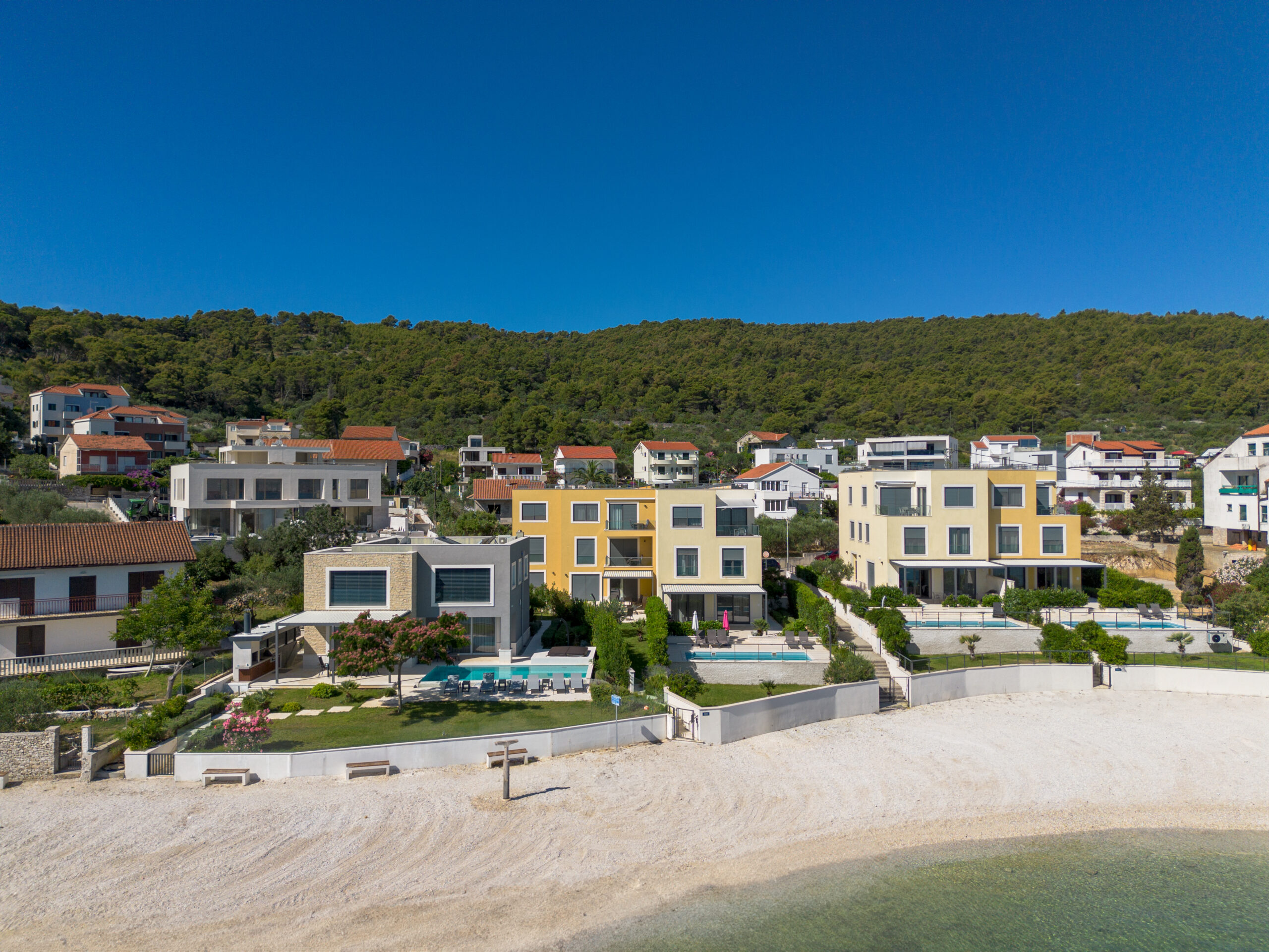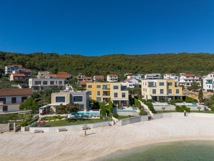 • Brand new resort designed solely for your vacation experience • Located right on one of the crystal-clear beaches of Slatine (Čiovo island) • 5 fully air-conditioned luxury villas starting at 270m² living space all with ocean view • 9 fully air-conditioned apartments starting at 100m² living space either with own garden and pool or roof terrace • 100% beachfront: no street between the villas and the ocean • Beach with circumscribed swimming area right on the beach in front of the villas • Buoys for boats available