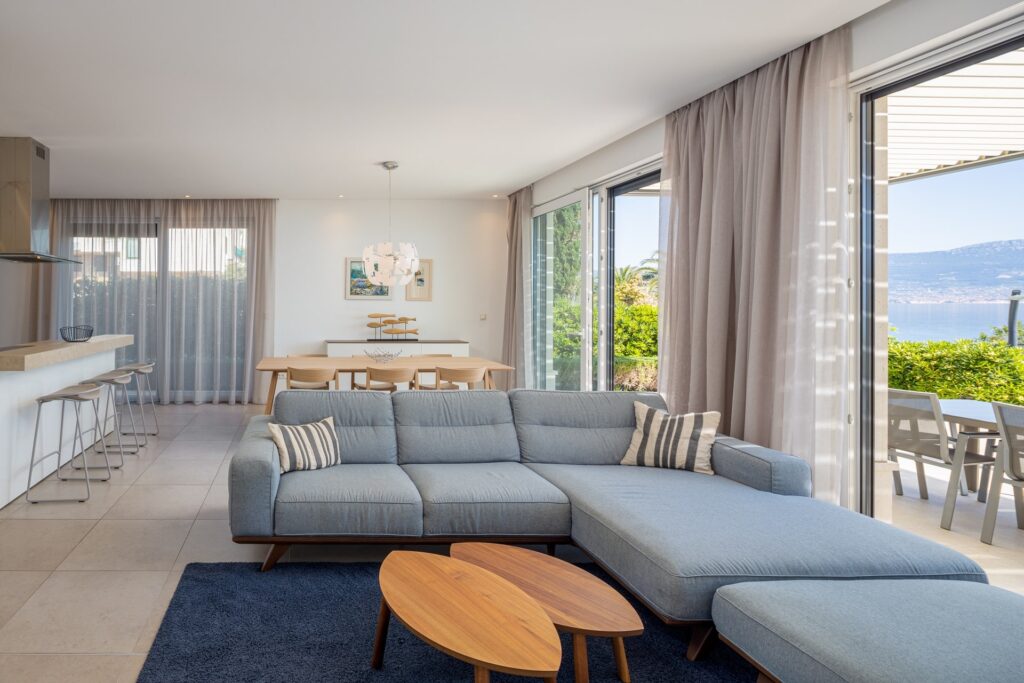 • 4 times a day passenger ferry transport from and to Trogir and Split (15-min walk) • The UNESCO cultural heritage sites of Trogir and Split only a short drive away • Split Airport transfer to Acadia, Slatine upon request • Private boat, ferry and watersport opportunities • A variety of tours offered to the treasures of the Dalmatian Coast like the Golden Horn, Hvar’s Blue Cave, national park Krka and Plitvice • International airport of Split in close proximity (less than 20-min drive) • Restaurants & shopping within walking distance