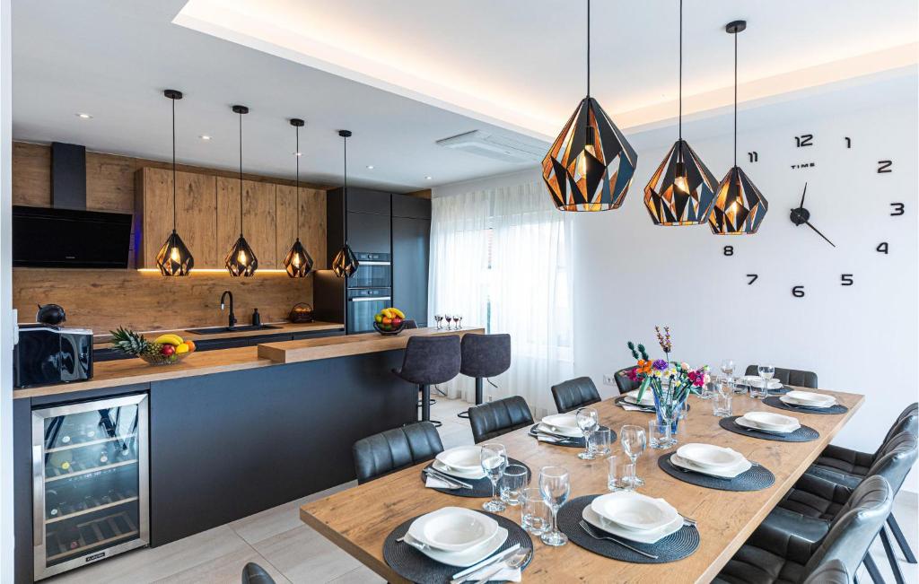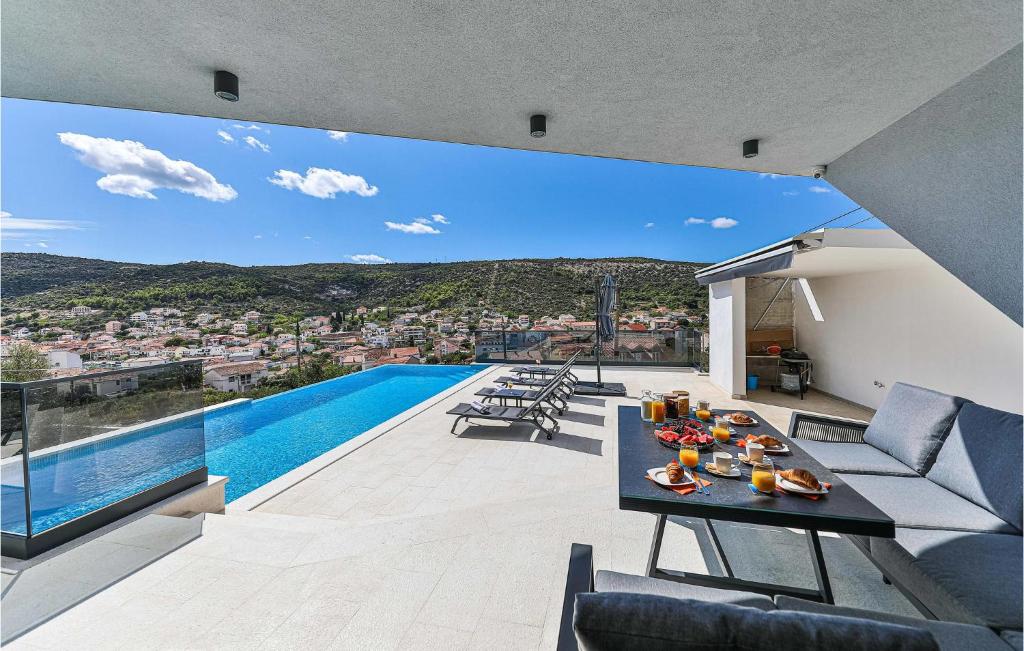 Located in Marina west of Trogir, this fully equipped vacation home invites you to a first-class vacation. The high-quality, comfortable furnishings make a modern, tasteful impression and testify to thoughtful solutions throughout the house. Look forward to preparing your delicacies in the lovely kitchen and spending sociable hours in the living area.