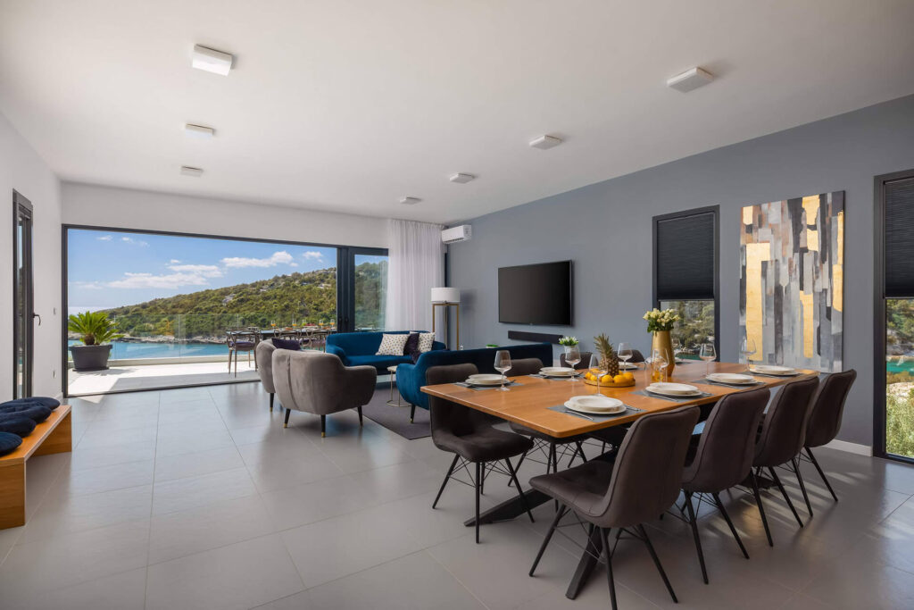 Nearby Attractions: Ljubljeva Cove Beach is a 2-minute walk away, while Split Airport is 25 km from the villa. Other attractions include Salona Archeological Park (43 km) and Diocletian’s Palace (48 km).