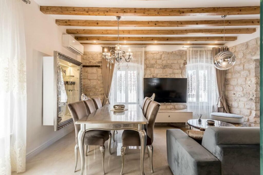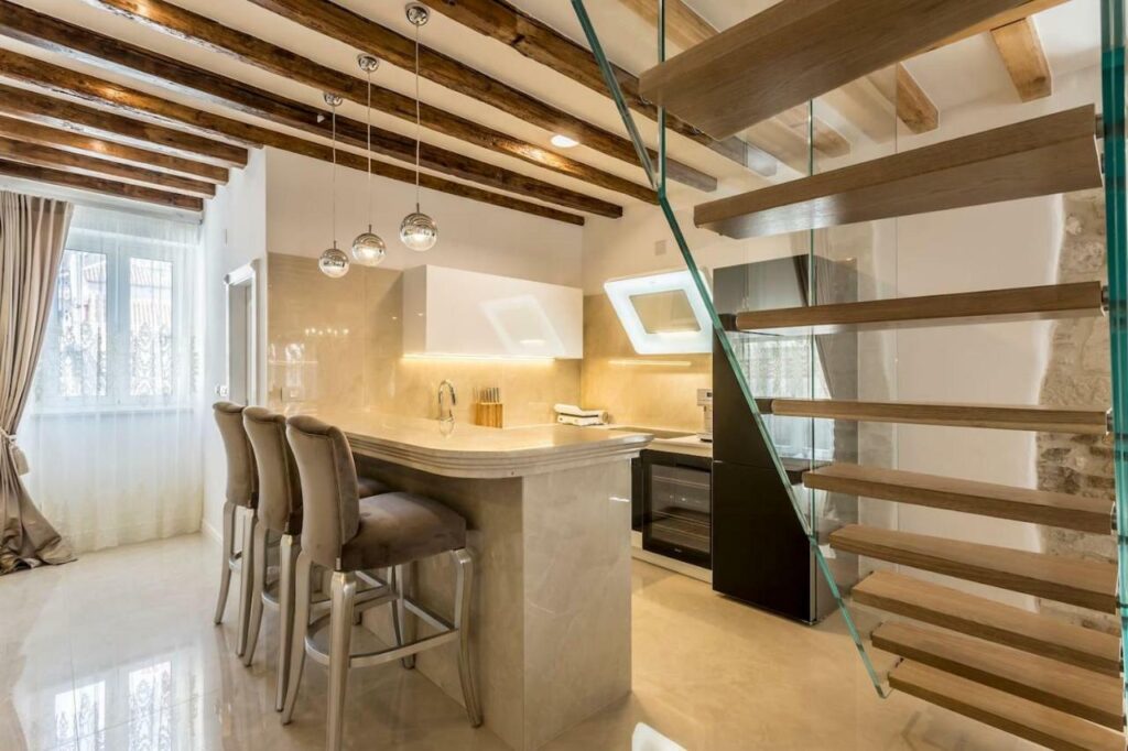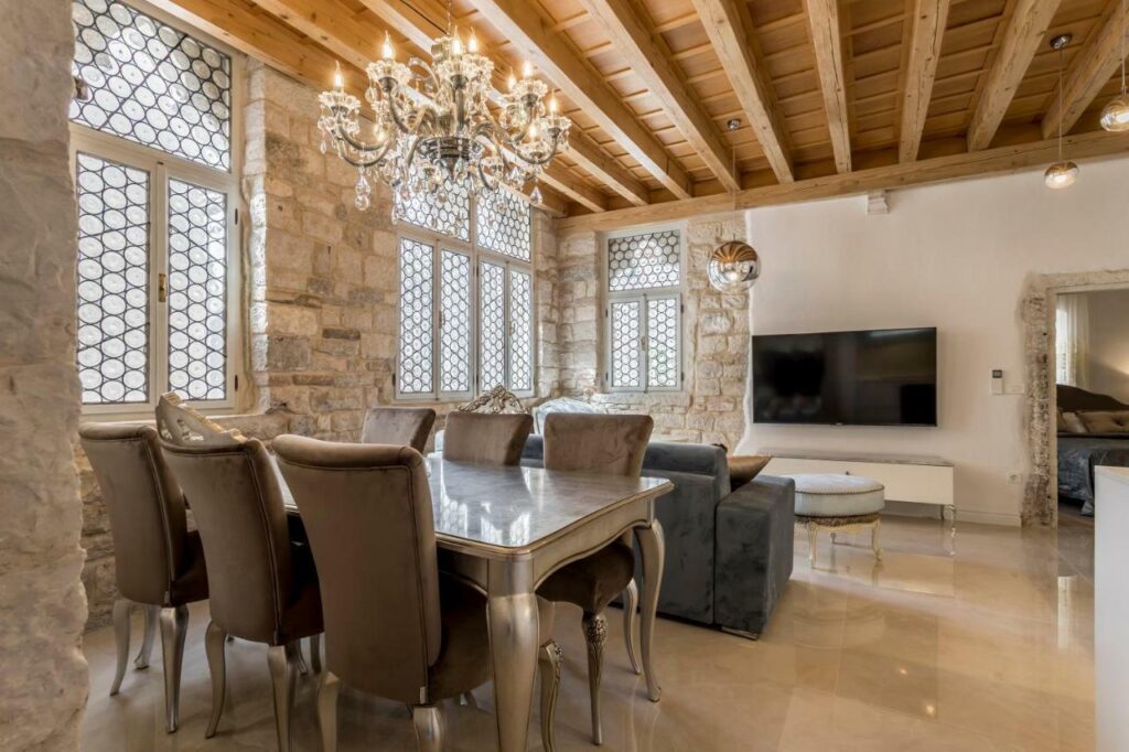 Elegant Accommodation: Berislavic Palace in Trogir offers a 5-star apartment with a bar and free WiFi. Guests enjoy air-conditioning, a kitchenette, and a private bathroom with a walk-in shower.