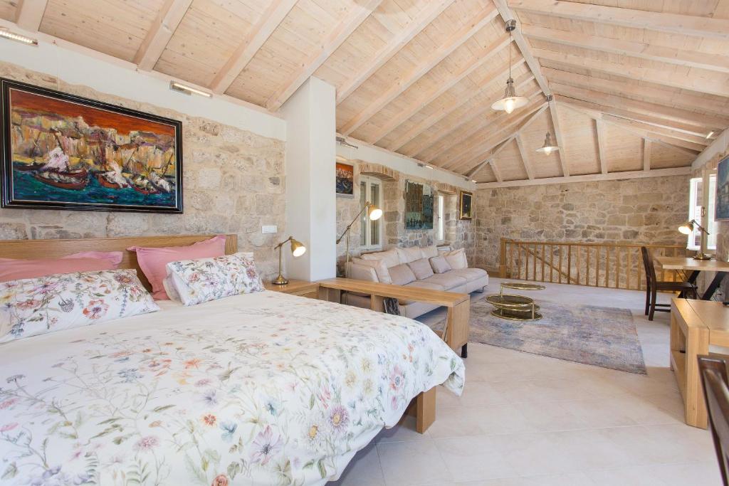 The first floor also houses a bathroom, ensuring convenience and privacy during your stay. As you ascend to the second floor, you’ll be greeted by a spacious bedroom adorned with tasteful decor and furnished for absolute relaxation. An open space living area on this floor invites you to revel in the artistic atmosphere while enjoying the scenic vistas surrounding you. The infusion of art and culture within its walls sets our Heritage Art Home apart. The renowned Croatian painter, artist, and composer Milijada Barada’s paintings adorn the interiors, adding an artistic dimension to your stay. Immerse yourself in the creations of a true master and let art be your constant companion during your vacation. Whether you are an art enthusiast or simply seeking an idyllic retreat by the sea, our Heritage Art Home promises an unforgettable experience. Every aspect of this abode has been carefully curated to ensure that you feel at home and inspired and uplifted by the artistic energy surrounding you.