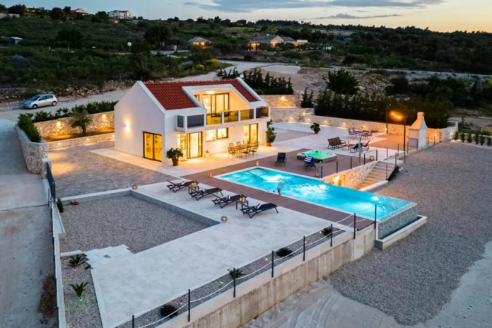 Free parking on site – Outdoor heated pool – Private outdoor swimming pool (24m2) – Consumption costs incl. – Air conditioning cold/hot – Air conditioning – Bedlinen incl towels (included) – Final cleaning (included) – Cot: 1 – Child’s chair: 1 – Pets: 1 In this holiday home you can spend unforgettable holidays on the beautiful island of Brac.