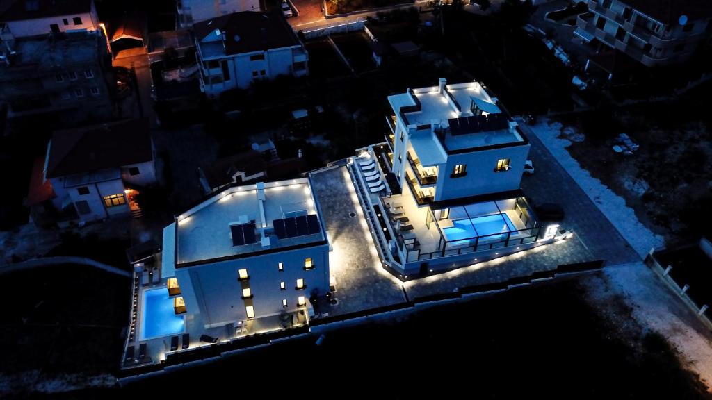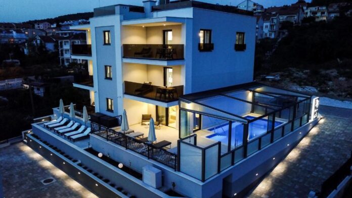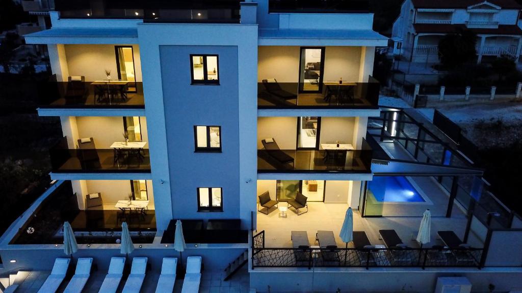 Beachfront Location: Villa 23 A in Okrug Gornji offers direct beachfront access and stunning sea views. Guests can relax by the swimming pool with a view, sun terrace, and lush garden.