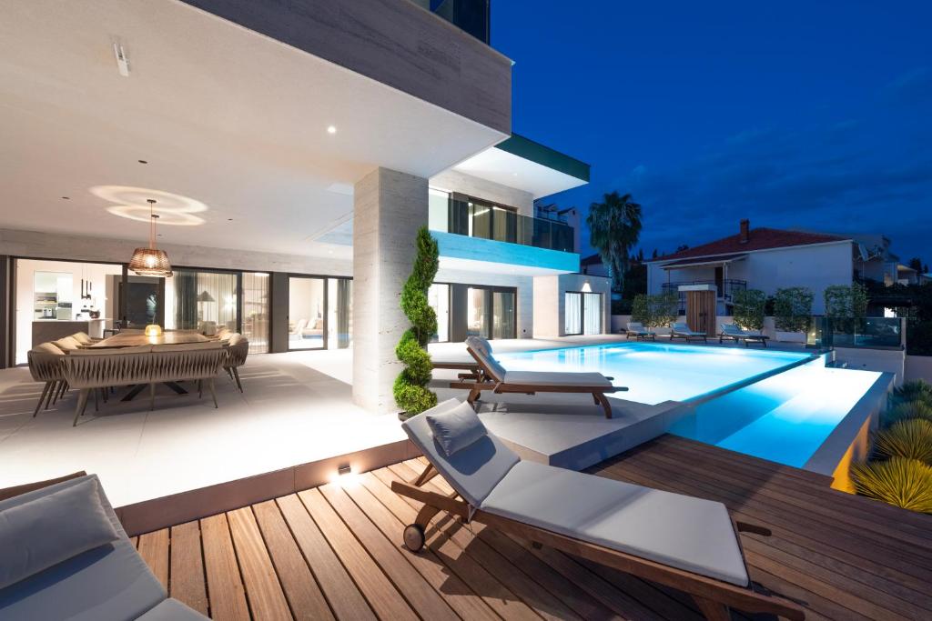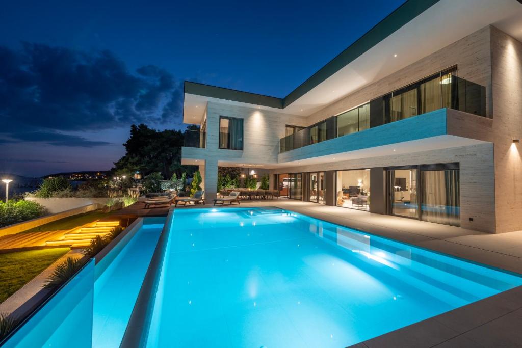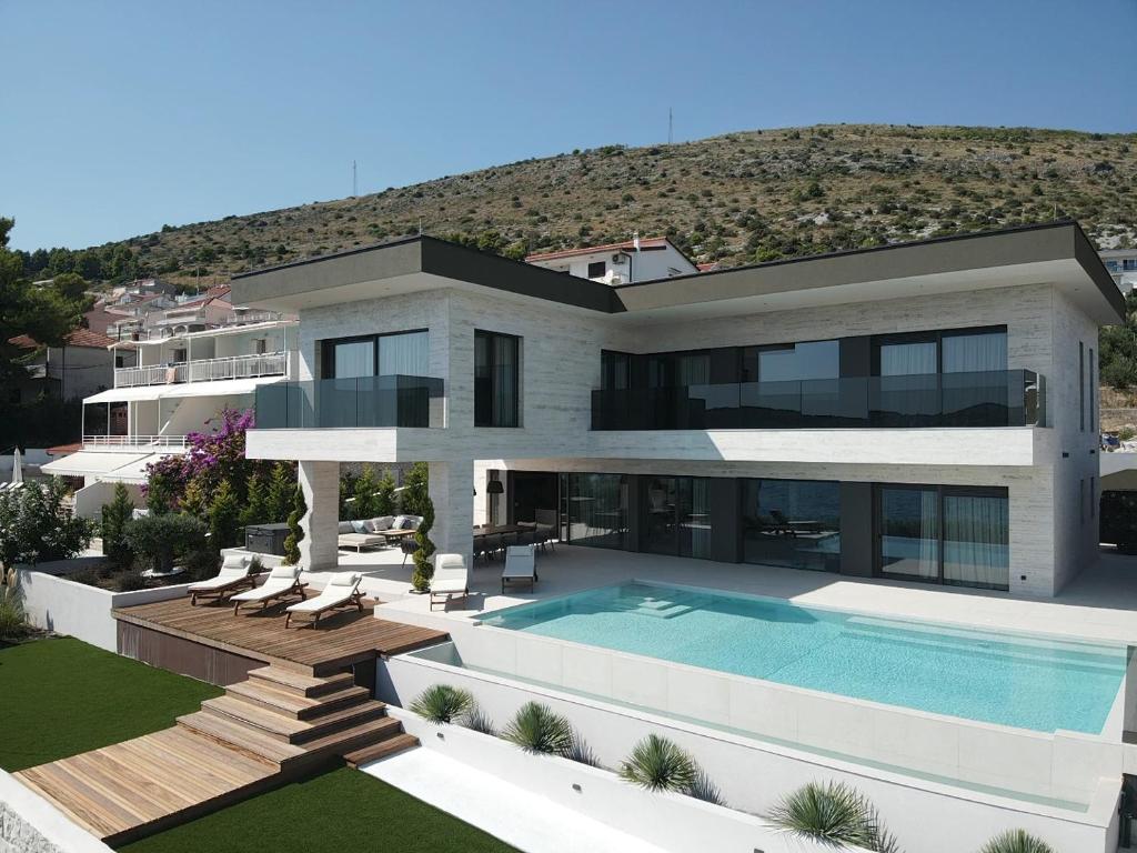 Beachfront Location: Villa Malia in Seget Donji offers direct beachfront access with stunning sea views. Guests can relax by the infinity swimming pool or sun terrace, while the lush garden provides a tranquil retreat.
