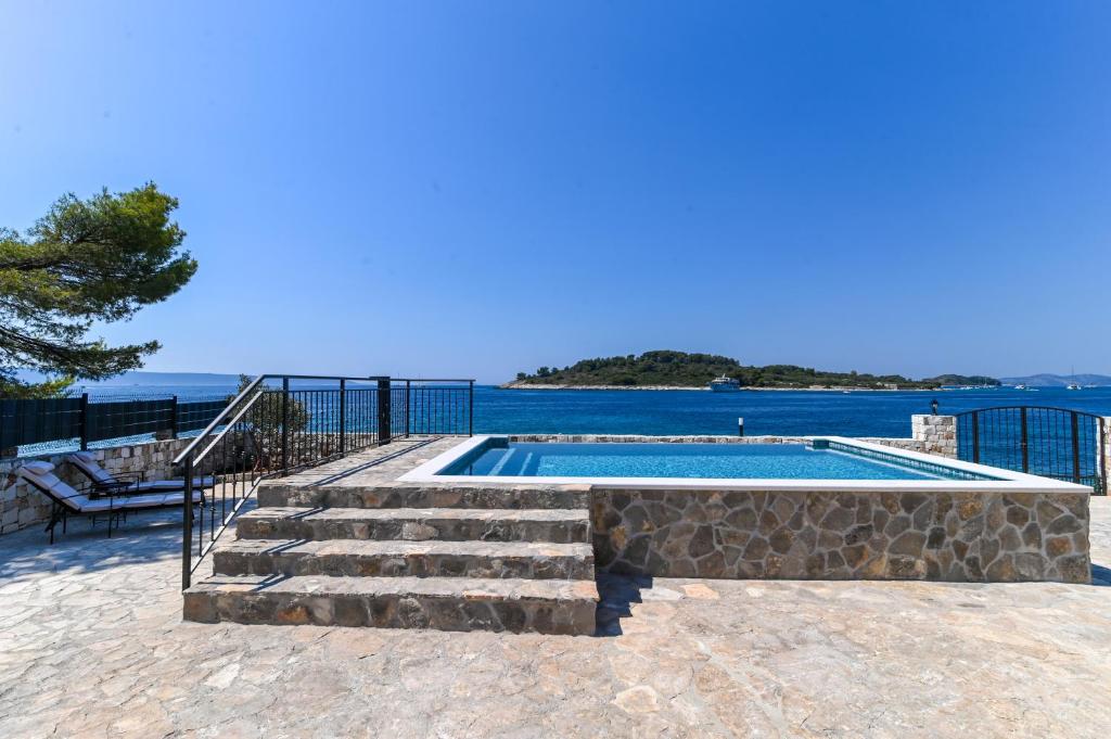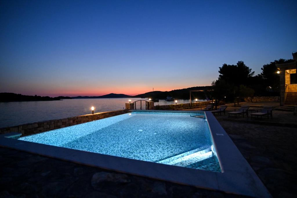 Beachfront Location: Villa Rudini with heated pool in Okrug Gornji offers direct beachfront access and stunning sea views. Guests can relax on the terrace or by the infinity swimming pool, enjoying the serene surroundings.