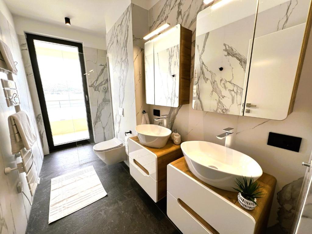 Beautiful and brand-new Villa Sophie Emilie awaits you for your perfect vacation. It is located just 50 m from the sea and the beach in Okrug Donji, on the beautiful island of Ciovo, connected with bridges to the historic city of Trogir.