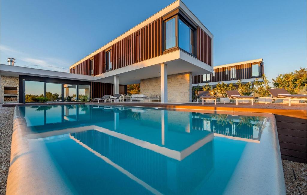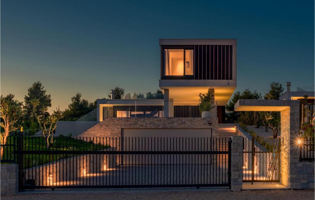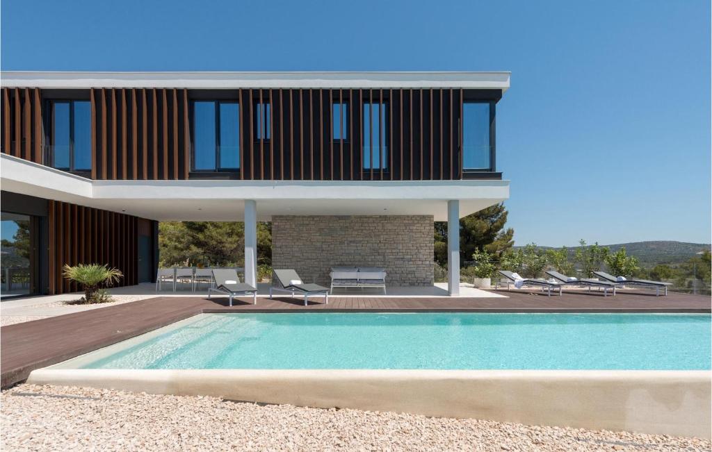 Free Garage on site – Outdoor heated pool – Private outdoor swimming pool (48m2) – Consumption costs incl. – Fully airconditioned – Not suitable for youth groups – Bedlinen incl towels (included) – Final cleaning (included) – Cot: 1 – Child’s chair: 1 Compulsory: – Deposit: 1000.00 EUR/Per stay As the name itself reveals, the beautiful modern villa Sunray 1 is flooded with sunrays at sunrise and sunset and offers a magnificent panoramic view of the sea and the small picturesque town of Primosten, which is less than a kilometer away.
