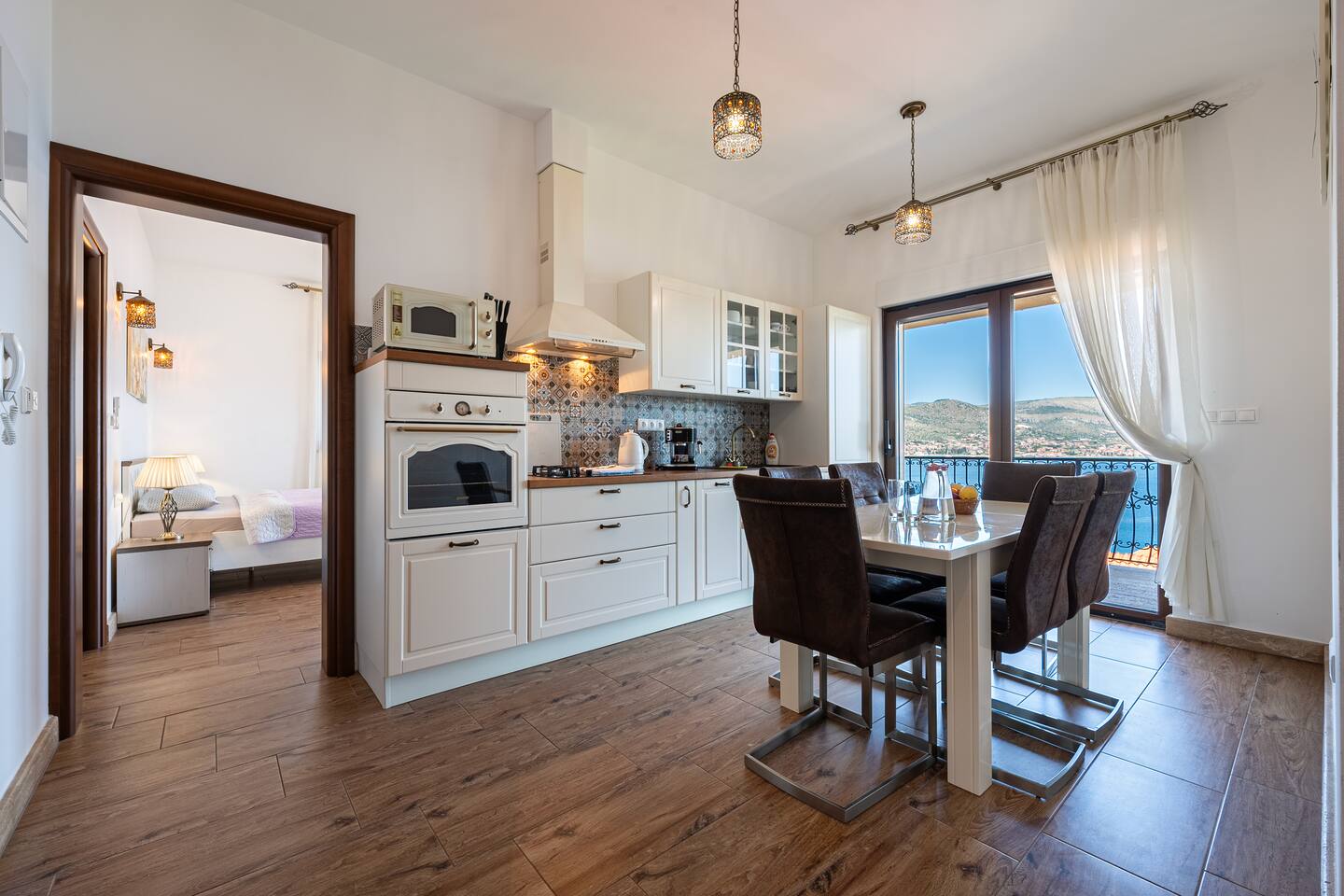 Comfortable Accommodations: Each apartment features air-conditioning, a private balcony, and a fully equipped kitchen. Additional amenities include a washing machine, dishwasher, and free WiFi, ensuring a comfortable stay.
