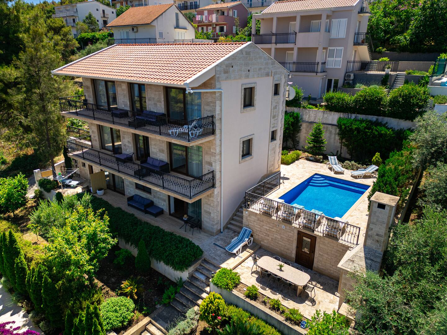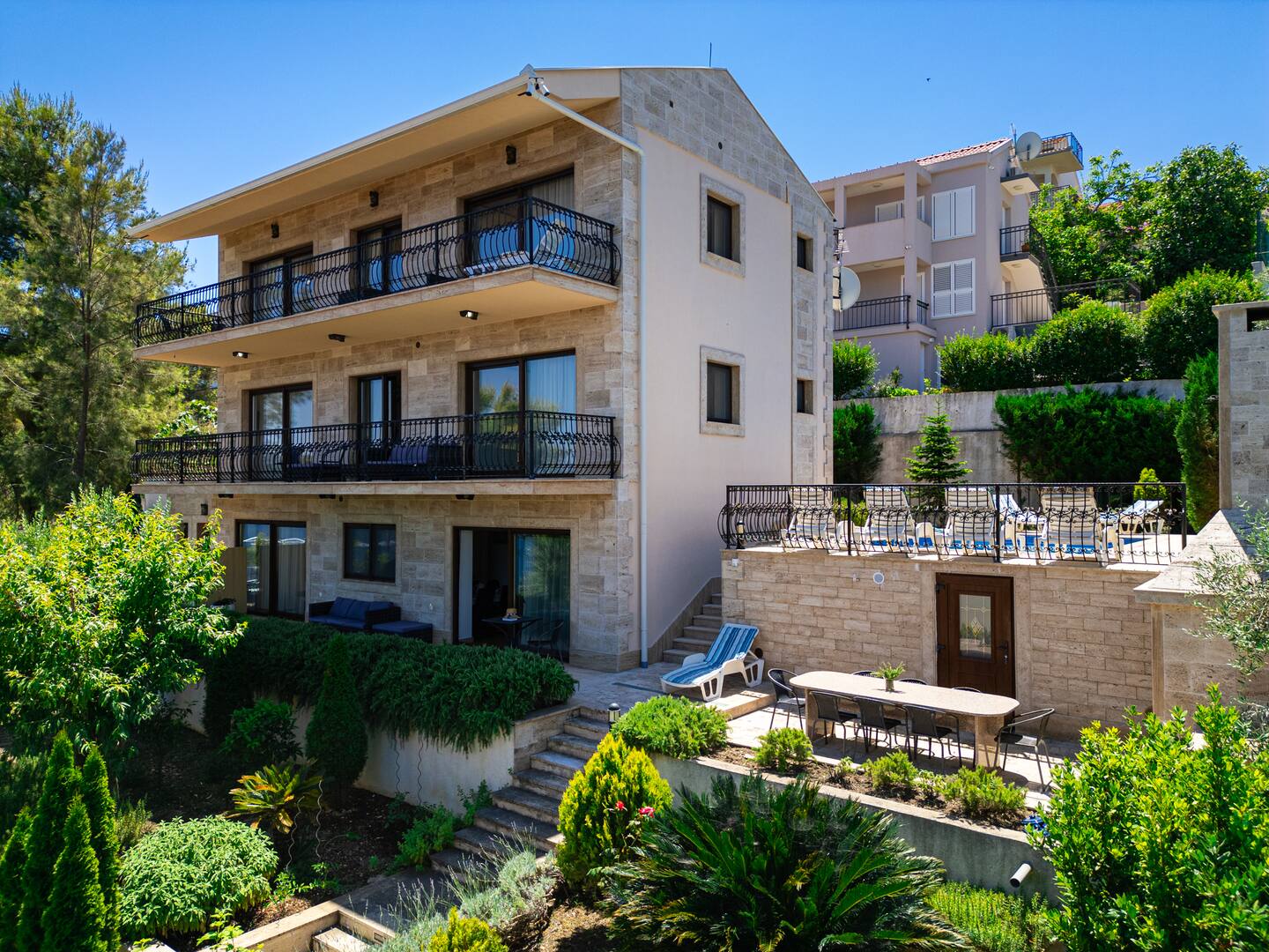 Prime Beachfront Location: Villa Sunset Apartments in Okrug Donji offers direct beachfront access with stunning sea views. Guests can relax on the sun terrace or take a dip in the outdoor swimming pool.