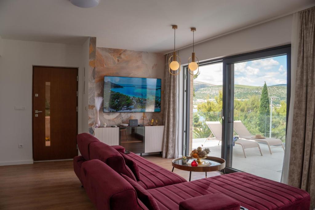 Nearby Attractions: Miševac Beach is a 3-minute walk away, while Split Airport is 4 km from the villa. Other attractions include Salona Archeological Park (24 km) and Diocletian’s Palace (29 km).