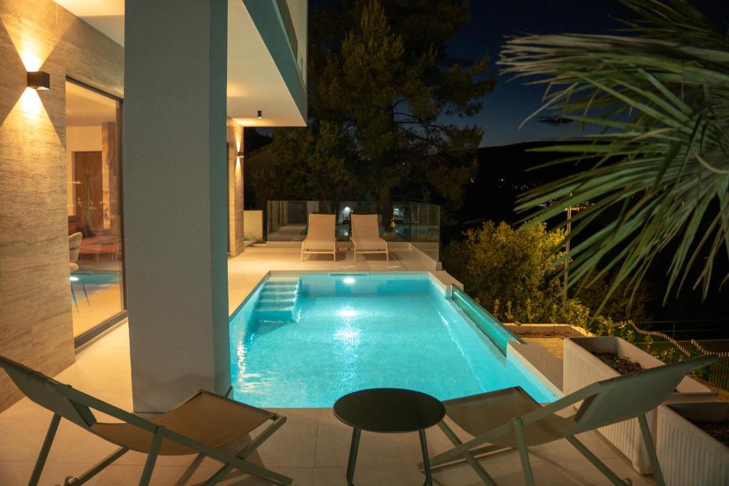 Beachfront Location: Villa Ventus Trogir in Trogir offers direct beachfront access with stunning sea views. Guests can relax by the swimming pool with a view or unwind on the sun terrace. The property features a spacious garden and free WiFi throughout.